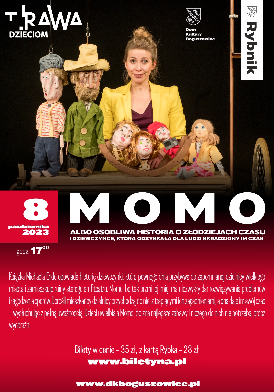 „MOMO” to inscenizacja kultowej powieści dziecięcej, której pełny tytuł brzmi: „Momo albo Osobliwa historia o złodziejach czasu i dziewczynce, która odzyskała dla ludzi skradziony im czas”.
