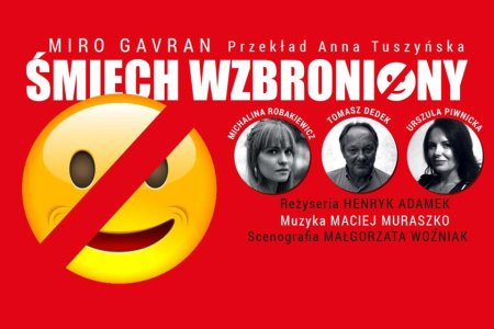Po trwającym pięć lat romansie, Kasia, trzydziestodwuletnia szkolna psycholog, zrywa ze starszym od siebie o szesnaście lat kochankiem, Piotrem. Mężczyzną z ponad dwudziestoletnim małżeńskim stażem, ojcem dwójki dorosłych dzieci. Piotr wraca do swojej żony Joanny i staje się nieznośnie zaborczym mężem. Usiłuje narzucić najbliższym nowy tryb życia rodzinnego. Niezadowolona z zaistniałej sytuacji małżonka postanawia spotkać się z byłą kochanką męża. Szantażuje ją, chce, by sprawy wróciły na dawne tory. Piotr oczywiście o niczym nie może się dowiedzieć… Akcja sztuki prowadzi nas w stronę rozwiązań, do jakich nie przywykliśmy. Obraz rzeczywistości przedstawiony w „Śmiechu wzbronionym” przywodzi na myśl domek z kart. Wystarczy wyjąć jedną kartę, a wtedy… ŚMIECH. Owszem, gorzki, ale… wolno się śmiać. Nawet głośno. Tyle, że na własną odpowiedzialność! Sztuki Gavrana od ponad dwudziestu lat odbywają triumfalny pochód przez sceny całego świata. „Śmiech wzbroniony” stanowi z pewnością jedno z największych osiągnięć chorwackiego dramaturga.