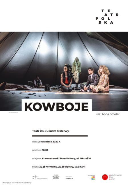 Krasnostawski Dom Kultury serdecznie zaprasza na pierwszy w tym roku spektakl w ramach programu Teatr Polska. Dnia 21 września 2020 r. o godz. 18:00 będziemy gościć aktorów z Teatru Osterwy z Lublina ze spektaklem „Kowboje”.