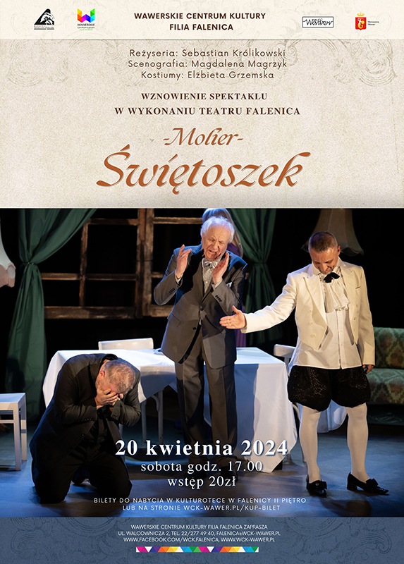 Zapraszamy na spektakl "Świętoszek" Moliera w reżyserii Sebastiana Królikowskiego w wykonaniu aktorów Teatru Falenica.