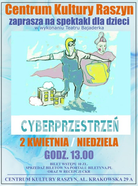 Centrum Kultury Raszyn zaprasza dzieci wraz z opiekunami na spektakl pt. Cyberprzestrzeń w wykonaniu Teatru Bajaderka.