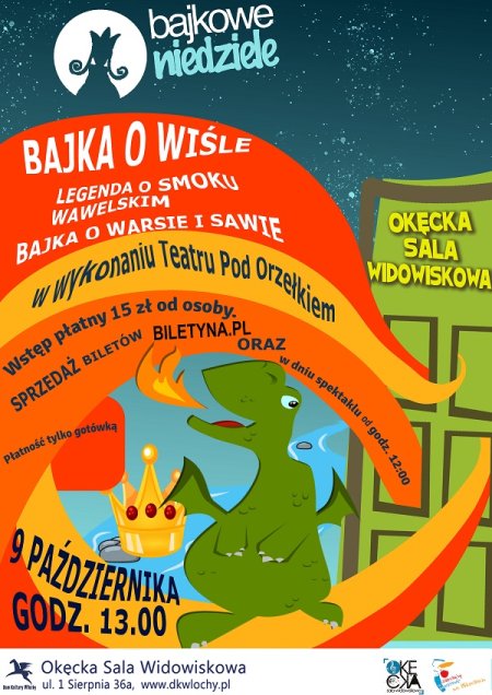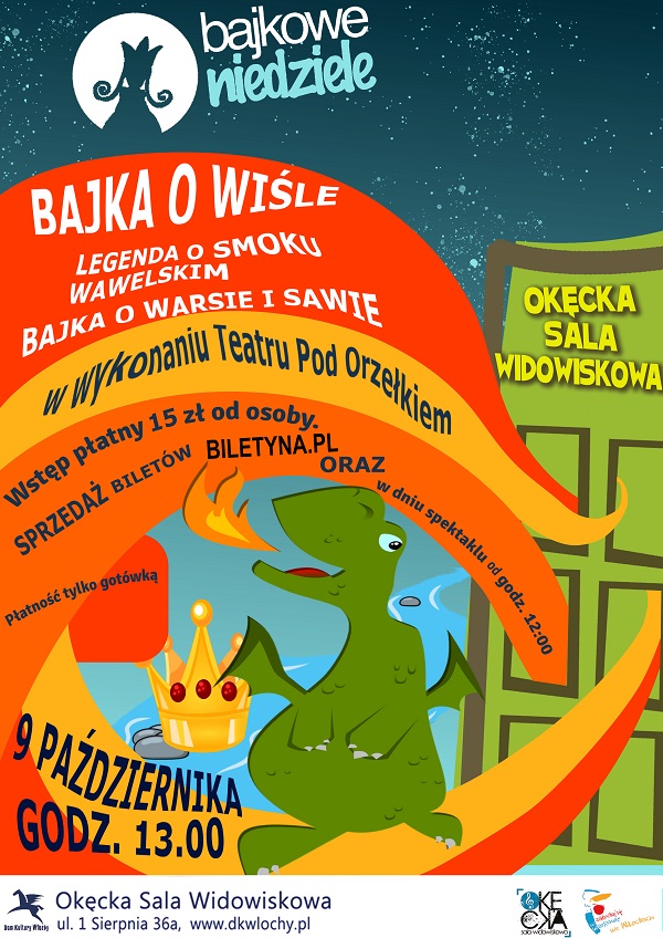 Zapraszamy dzieci od lat 3 na spektakl w ramach cyklu Bajkowe Niedziele "Lekcja o Polsce czyli bajka o Wiśle, legenda o Smoku Wawelskim oraz o Warsie i Sawie" w wykonaniu Teatru Pod Orzełkiem.