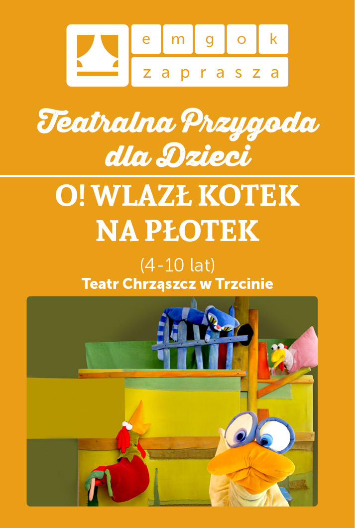 Spektakl dla dzieci O! WLAZŁ KOTEK NA PŁOTEK Teatr Chrząszcz w Trzcinie w Strumieniu