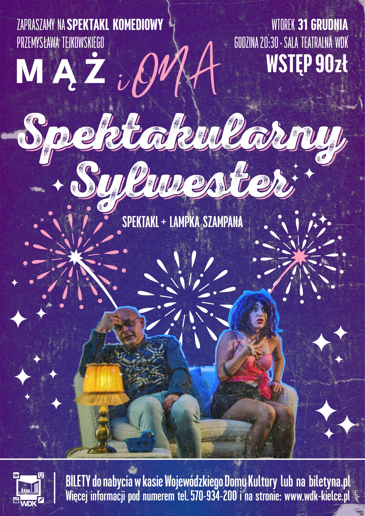 Dołączcie do nas na Sylwestra, kończąc rok 2024 pełnym humoru akcentem! Zapraszamy na spektakl komediowy „Mąż i Ona” Przemysława Tejkowskiego. Będzie się działo – więcej mówić nie trzeba!