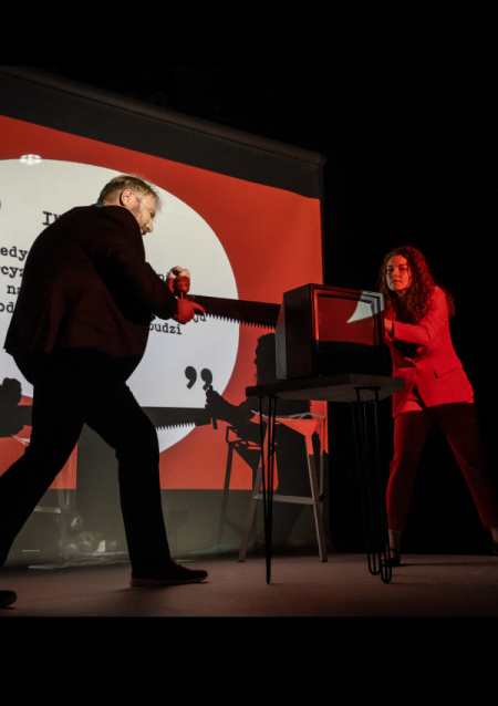 Analiza problemów relacji damsko-męskich z przymrużeniem oka w spektaklu teatralnym „Stosunki prawne”, przygotowanym w oparciu o tekst autorstwa Szymona Turkiewicza.
