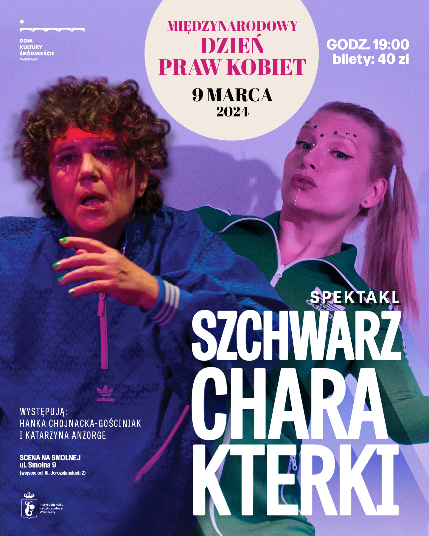 „Schwarzcharakterki” w reżyserii Julii Mark to druga, po kieleckiej prapremierze, inscenizacja błyskotliwego, przewrotnego tekstu Martyny Wawrzyniak, który w 2021 roku znalazł się w finale Gdyńskiej Nagrody Dramaturgicznej. Muzykę napisał Wiktor Stokowski („Pożar w Burdelu”). W role antybohaterek wcielają się Hanka Chojnacka-Gościniak i Katarzyna Anzorge.