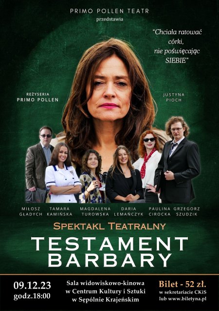 Tytułowa Barbara w obliczu zbliżającej się śmierci zwołuje swoje porzucone przed piętnastu laty córki, aby porozmawiać o testamencie. Pragnie przy tym wyjaśnić im powody, dla których przed laty oddała je pod opiekę swojej siostrze, a sama zajęła się tworzeniem firmy i zarabianiem pieniędzy. Osiągając coraz większe sukcesy w biznesie z radością oddalała się od tragicznej przeszłości związanej ze śmiercią męża oraz widmem nieuchronnej biedy. Jednak pojawienie się zwaśnionych córek na tak doniosłym wydarzeniu rodzinnym, zamiast spodziewanego pojednania, doprowadziło do potoku utarczek słownych oraz bezpardonowej wymiany nagromadzonych pretensji i żalu. Barbara widząc jak jej córki zuchwale skaczą sobie do oczu, próbuje je ze wszystkich sił uspokoić i wyjaśnić tajemnicę swojego życiowego dramatu. Niestety jest bardzo osłabiona chorobą i co chwila udaje się na krótki odpoczynek do sąsiedniego pokoju. Na szczęście z pomocą przychodzi jej opiekunka, niezastąpiona pani Kamilka, która przywołuje młode kobiety do porządku, jednocześnie tłumacząc zawiłości i dylematy jakim w swoim trudnym życiu poddawana była Barbara.