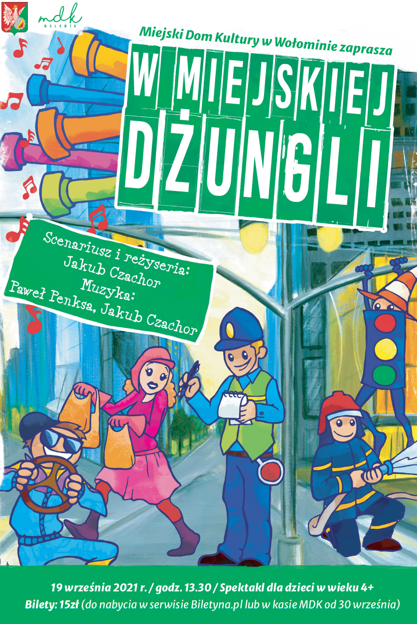 Nie ma groźniejszej dżungli, niż ta miejska. Z odrobiną fachowej pomocy można ją łatwo okiełznać. Zapraszamy młodych widzów na kolorowy, interaktywny, zabawny i edukacyjny spektakl, podczas którego dzieci poznają podstawowe zasady bezpieczeństwa i ekologii, a to wszystko w kabaretowo – musicalowej formie i przy dużym zaangażowaniu Publiczności.