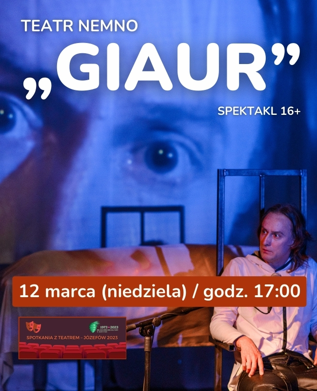 Klasyczny utwór Byrona „Giaur” w odsłonie przygotowanej przez Teatr Nemno jest kombinacją wypowiedzi wierszem, doskonałego aktorstwa, projekcji audiowizualnych i bardzo współczesnej tematyki. Spektakl jest zrealizowany w formie ostatniej spowiedzi, w której uczestniczy Giaur –pokutnik iOjciec Spowiednik – Widownia. Zderzając formę klasyczną utworu Byrona ze współczesną formą wypowiedzi teatralnej i eksponując równocześnie różne estetyki wizualne, spektakl ma na celu pokazanie konfliktu, braku przystosowania i wyobcowania głównego bohatera, do otaczającego go współczesnego świata. Projekt zrealizowano w ramach stypendium twórczego Ministra Kultury iDziedzictwa Narodowego. W spektaklu wykorzystano materiały filmowe dzięki uprzejmości Fundacji Międzynarodowy Ruch Na Rzecz Zwierząt Viva! Reżyseria: Henryk Hryniewicki; scenografia iprojekcje video: Dagmara Jemioła-Hryniewicka; muzyka: Piotr Zygma.