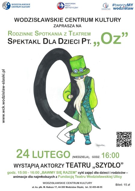 Wodzisławskie Centrum Kultury zaprasza dzieci i dorosłych na najnowszy spektakl Teatru Szydło pt. „Oz”, który odbędzie się 24 lutego 2019 r. w WCK. Scenariusz przedstawienia powstał na kanwie powieści Lymana Franka Bauma"Czarnoksiężnik z krainy Oz"
