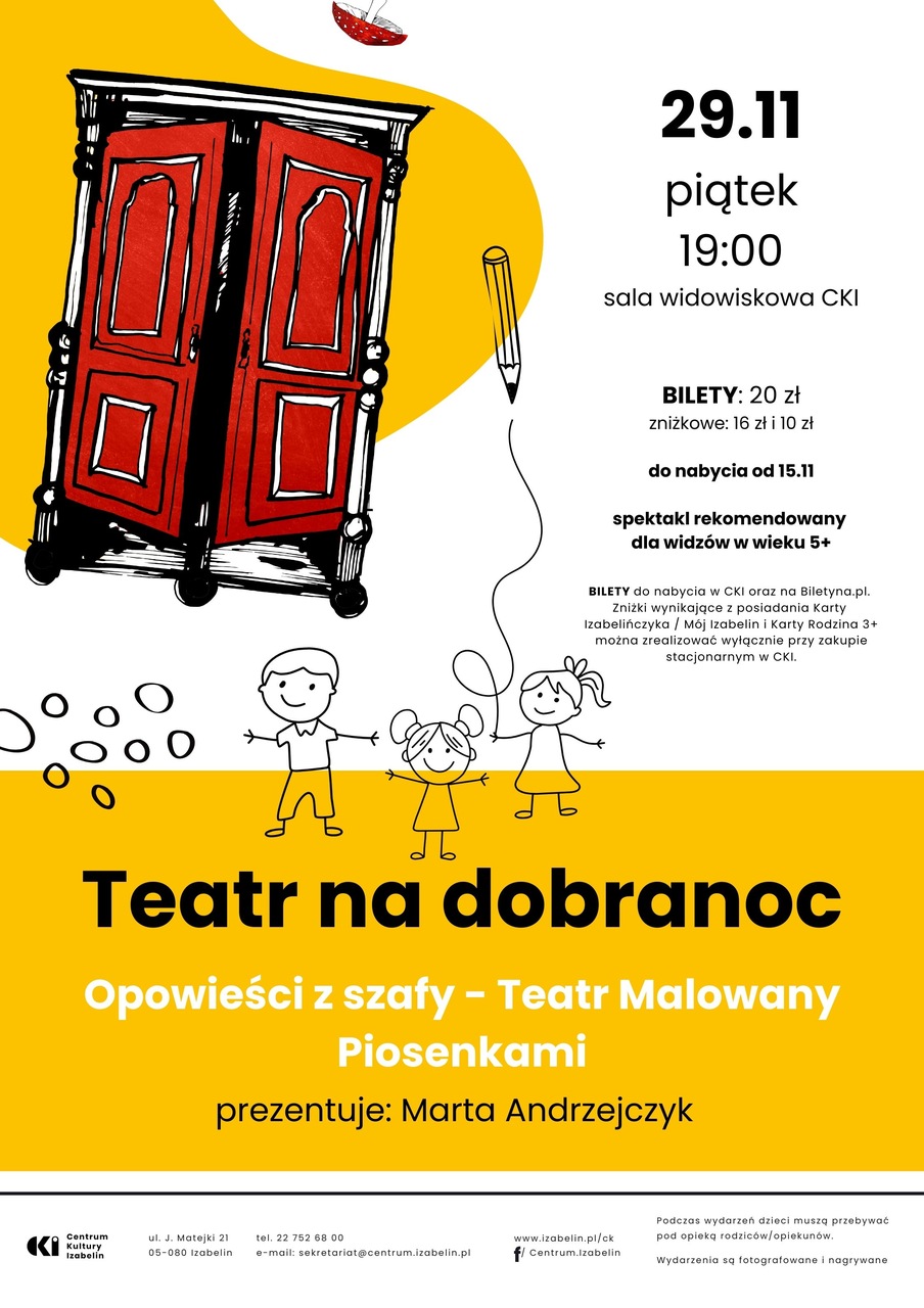 Specjalnie na potrzeby naszego izabelińskiego Teatru na dobranoc, który - jak wiadomo – odbywa się wieczorem i służy wyciszeniu, olsztyńska artystka Marta Andrzejczyk obiecała wyjątkowo urozmaicić Opowieści z szafy pięknymi kołysankami.