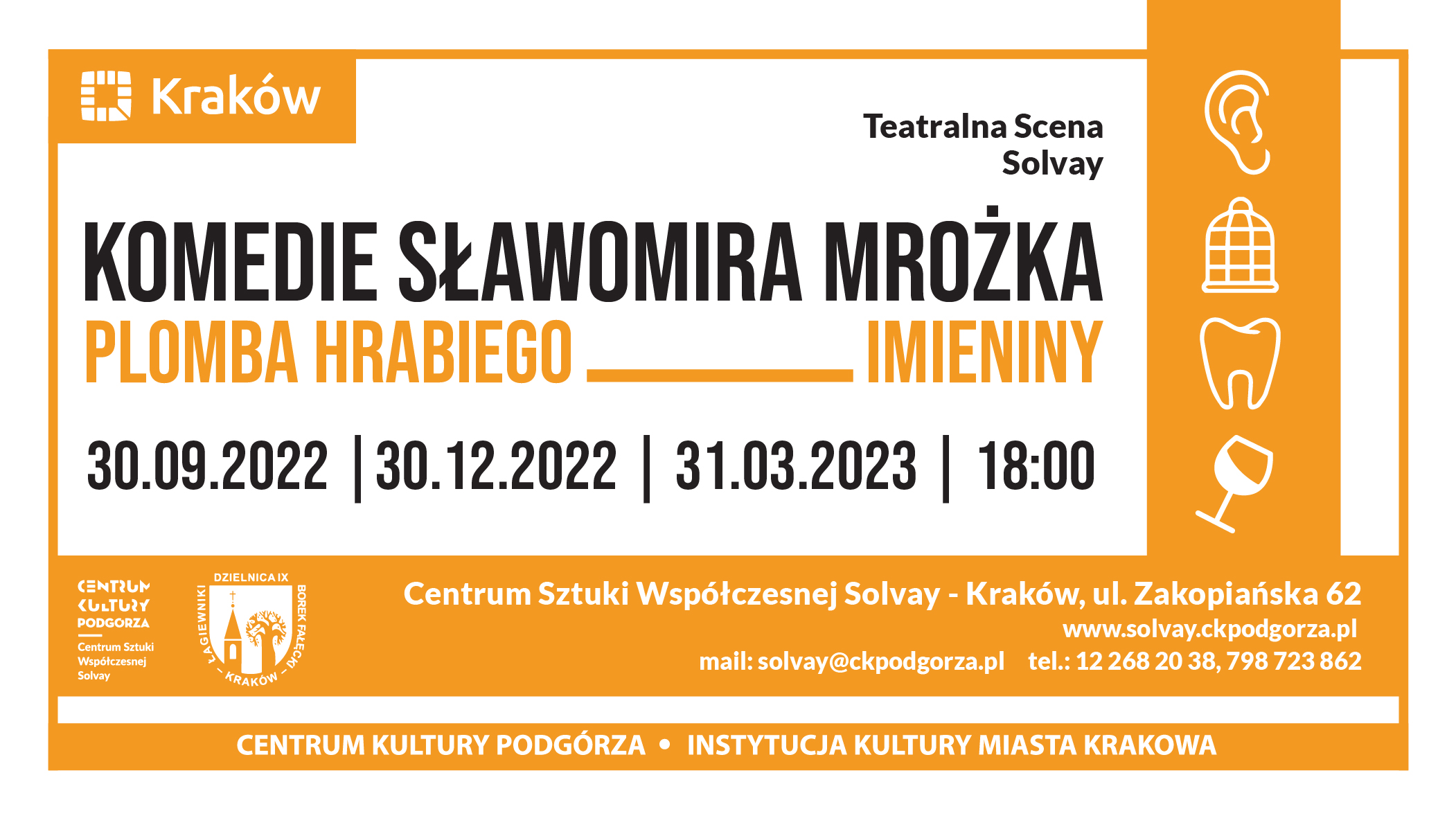 „Imieniny” i „Plomba Hrabiego” (premiera 05.06) to dwie jednoaktowe sztuki napisane przez Sławomira Mrożka. Opowiadają – na wesoło – o zwykłych wydarzeniach życiowych, także z wątkiem kryminalnym, ukazanych w groteskowej perspektywie. Przygotowano do nich specjalną oprawę plastyczną – grafiki i kostiumy, których autorką jest Elżbieta Kaczka. Reżyserował Bogusław Tondera, czeski reżyser znany głównie na Słowacji, który świetnie oddał w swojej inscenizacji polskiego, krotochwilnego ducha.