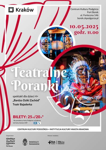 Teatralne Poranki w Forcie Borek to weekendowe spotkania dla najmłodszych z teatrem. 10 maja 2025 o godzinie 11.00 na scenie zagości Teatr Bajaderka ze spektaklem „Bardzo Dziki Zachód”.
