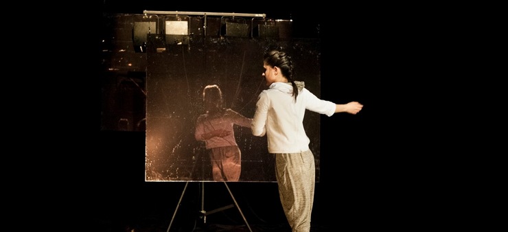 Jana Terekova´s dance solo makes the room vibrate by her movement that is dynamically connected to Zuzana Husarova´s contemporary poetry and Joseph Champagnona´s organic live music. The dancer deforms her body and her movement. The poetry breaks the reality into small pieces. The mirror, imperfection beauty, lightness. Magic visual moments vibrating in the assumption what you borrowed, what reflects itself, you shall return,…