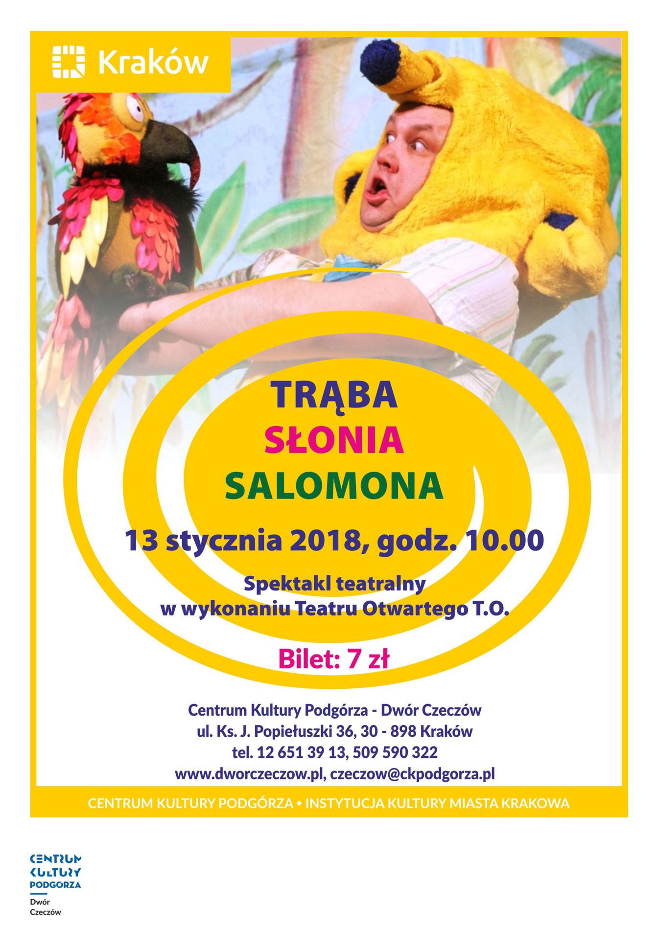 Zapraszamy serdecznie na spektakl pt. "Trąba Słonia Salomona", który odbędzie się 13 stycznia o godzinie 10:00 w CKP Dwór Czeczów.