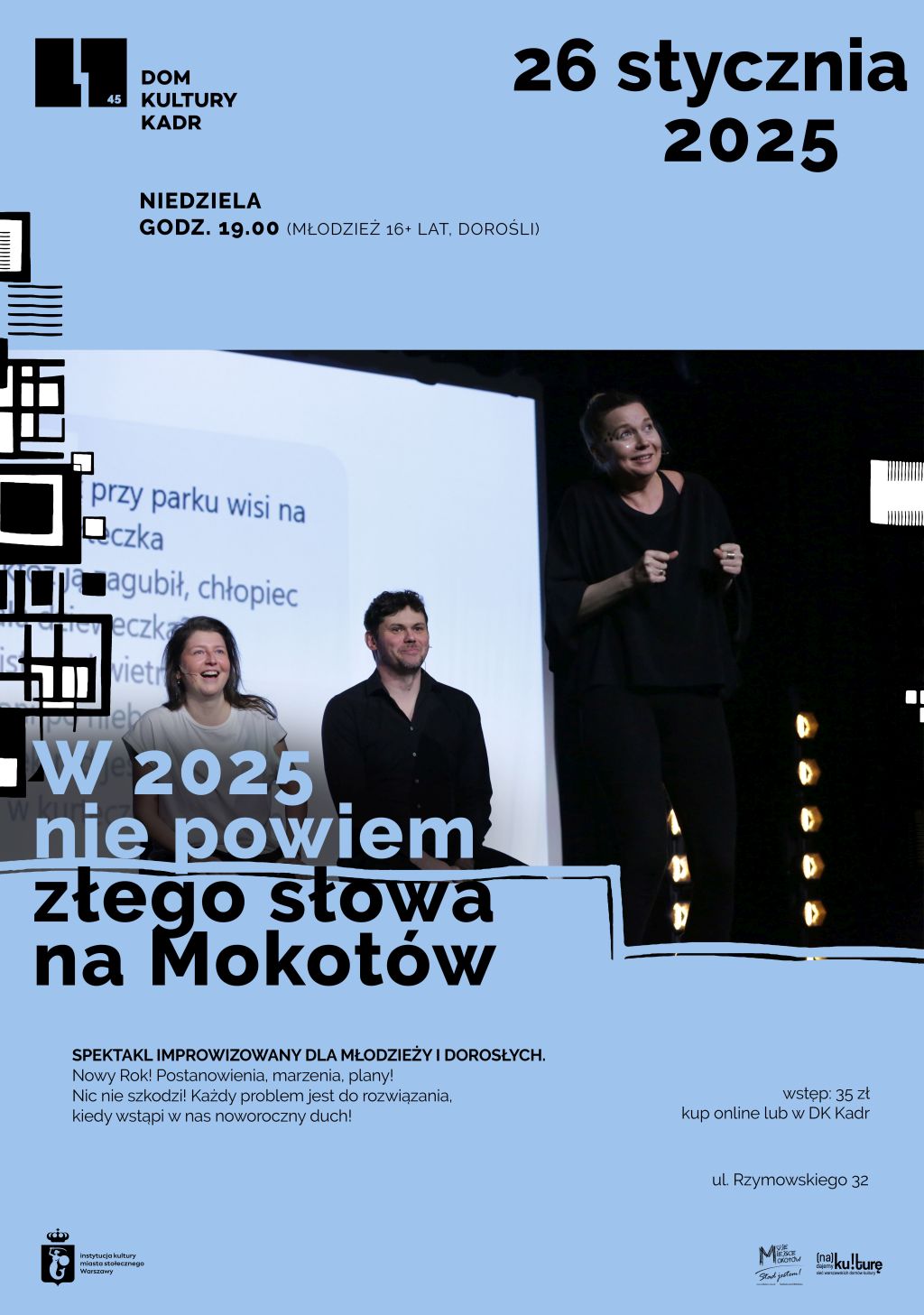 Recenzje i opinie: W 2025 nie powiem złego słowa na Mokotów - spektakl improwizowany dla młodzieży i dorosłych
