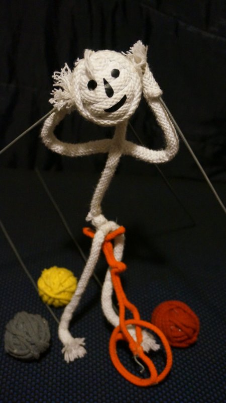 Co byś pomyślał, gdyby przywitał Cię jegomość w eleganckim fraku, w którego wszelkie możliwe kieszenie powtykane są kolorowe sznurki? Może: “Ale cyrk!”? I trafiłbyś! Jednak w tym cyrku nie spotkasz lwów skaczących przez obręcze ani tresowanych fok. Jego najjaśniejszą gwiazdą jest… rachityczna postać spleciona na oczach widzów ze zwykłego sznurka! Tak! W tak prostej formie tkwią zaskakujące możliwości. Jako widz tego spektaklu możesz stać się jego aktorem – druciki władzy nad lalką ze sznurka sprawnie przechodzą z rąk do rąk.