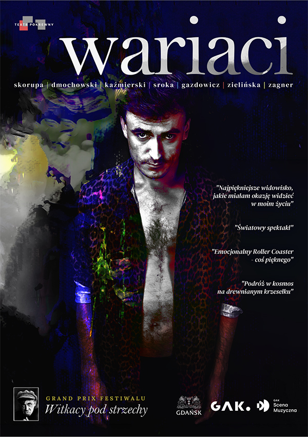 "Wariaci", to spektakl na aktora, muzyka i wielogłos żeński. Spektakl zabiera widza w głąb jaźni