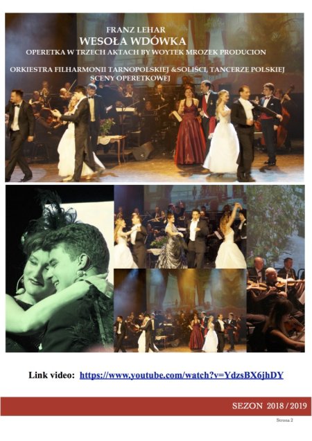 Produkcja Wojciecha Mrozka z udziałem solistów i tancerzy Operetki Śląskiej, oraz solistów sceny krakowskiej, wrocławskiej i warszawskiej. Bogata scenografia, doskonałe kostiumy oraz zabawne libretto uzupełniają całość tego arcydzieła sztuki operetkowej. Przyjazne widowisko dostarcza kilku godzin rozrywki i przyjemności wszystkim melomanom. Wielbiciele muzyki Lehára będą mogli posłuchać jego pięknych melodii i bawić się licznymi perypetiami. Wiecznie młoda, tryskająca radością i humorem operetka o miłości, zdradzie małżeńskiej i odpowiedzialności. Historia owiana niepowtarzalną atmosferą paryskich kabaretów oraz nieskrępowanych zabaw sali balowej. Franciszek Lehar stworzył jedną z najlepszych partytur w historii operetki. Niemal wszystkie utwory stały się światowymi przebojami: Ach, kobietki, Pieśń o Willi czy cudowny walc, nucony pod każdą długością geograficzną Usta milczą, dusza śpiewa. Operetka pełna intryg i wpadek przyciąga widzów dużą dawką dobrego humoru, bogactwem strojów oraz potęgą orkiestry i głosów artystów scen operowych. Wesoła Wdówka” to ponadczasowa opowieść – zapewnia doskonałą rozrywkę od początku... aż po szczęśliwe zakończenie.