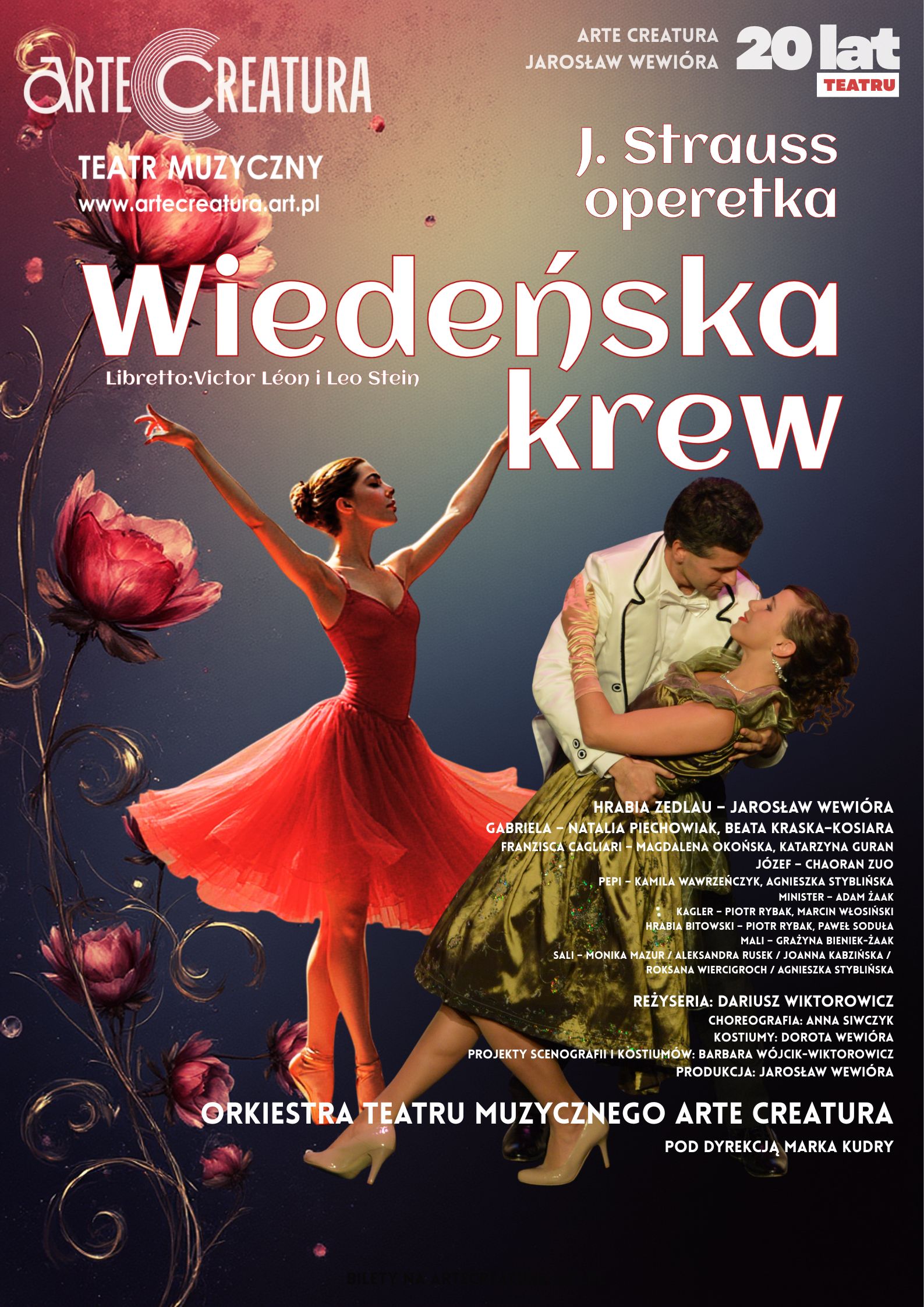 Jedyna w Polsce okazja, by zobaczyć roztańczony spektakl operetkowy pt. „Wiedeńska krew” Johanna Straussa w gwiazdorskim wykonaniu. Na scenie w rytmie walca pulsuje gorąca wiedeńska krew głównych bohaterów, rozbrzmiewają cudowne głosy i znane na całym świecie melodie. Każdy spektakl kończy się owacjami na stojąco i na długo zapada widzom w pamięć.