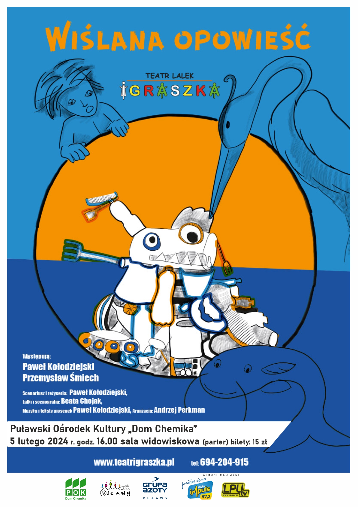 Spektakl „Wiślana opowieść” w wykonaniu Teatru Lalek IGRASZKA już 5 lutego o godz. 16:00 na sali widowiskowej POK „Dom Chemika”. Bilety: 15 zł.