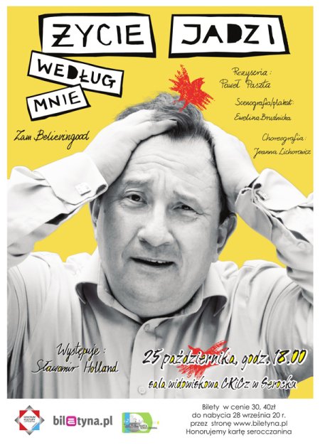Sławomir Holland (ur. 1958) Aktor, absolwent PWST we Wrocławiu, pracował z zespołach teatrów: S. Żeromskiego w Kielcach, Popularnego, Szwedzka 2/4, Na Woli w Warszawie, Polskiego w Bydgoszczy, Ateneum w Warszawie. W jego dorobku znajdują się takie role jak Henryk w Ślubie, Artur w Tangu, Chlestakow w Rewizorze, AA w Emigrantach, Gość w Jesiennym wieczorze Dürrenmata, Francois Pignon w Kolacji dla głupca, a także role w Czego nie widać Frayna, Kolaboracji Harwooda. Wraz z Jackiem Bursztynowiczem i Michałem Górczyńskim zrealizował dwa monodramy: Nic nowego pod słońcem (spektakl literacko-kabaretowy oparty na tekstach z dwudziestolecia międzywojennego Hemara, Jurandota, Tuwima, Słonimskiego, Leśmiana i innych) uhonorowany Złotym Liściem Retro 2012, a także Josela Rakowera rozmowa z Bogiem Zvi Kolitza (głęboki tekst osadzony w realiach powstania w warszawskim getcie) nagrodzony Nagrodą Publiczności na Trzecim Łódzkim Festiwalu Monodramu w 2012.