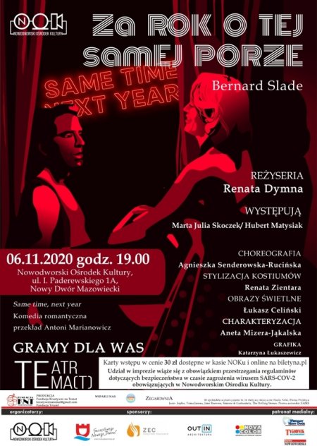 Regulamin spektaklu „Za rok o tej samej porze” w dniu 06.11.2020 w Nowodworskim Ośrodku Kultury-sala widowiskowa.