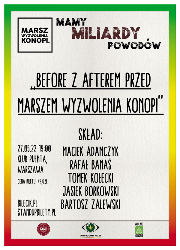 Prawo narkotykowe w Polsce to żart, więc obśmiewanie go jest naszym obowiązkiem. A obowiązek ten będziemy wypełniać po buch ostatni, po mach ostateczny, po kometę kończącą ponieważ wracamy do tradycji spotkań stand-upowych połączonych z muzycznym afterkiem dzień przed Marszem Wyzwolenia Konopi.