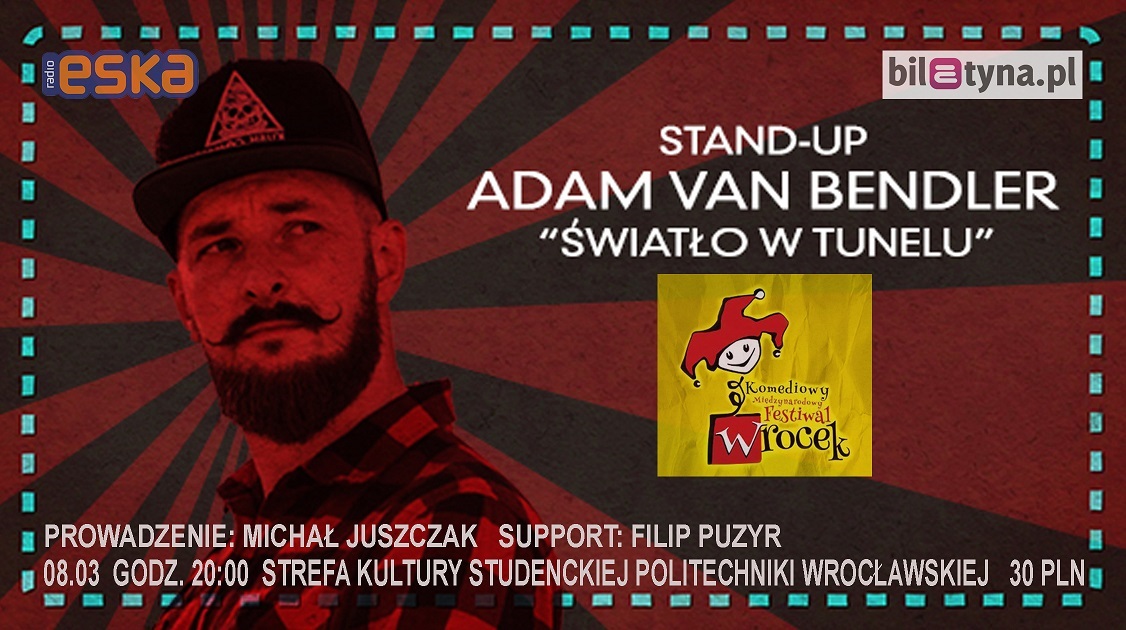 Adam van Bendler to charyzmatyczny i pełen wyrazu stand-uper z wieloletnim doświadczeniem. Ma za sobą kilkaset występów w całej Polsce i dziesiątki tysięcy ludzi rozłożonych na łopatki przez cięty dowcip. Co roku pojawia się na największych imprezach komediowych w kraju. Swoje życiowe przeżycia przekuwa w błyskotliwe, bawiące do łez anegdoty. A wszystko opowiadane z charakterystyczną dla niego ekspresją oraz doskonałym kontaktem z publiką. "Światło w tunelu" jest jego nowym, czwartym już programem. Zdecydowanie nie możecie przegapić tego występu!