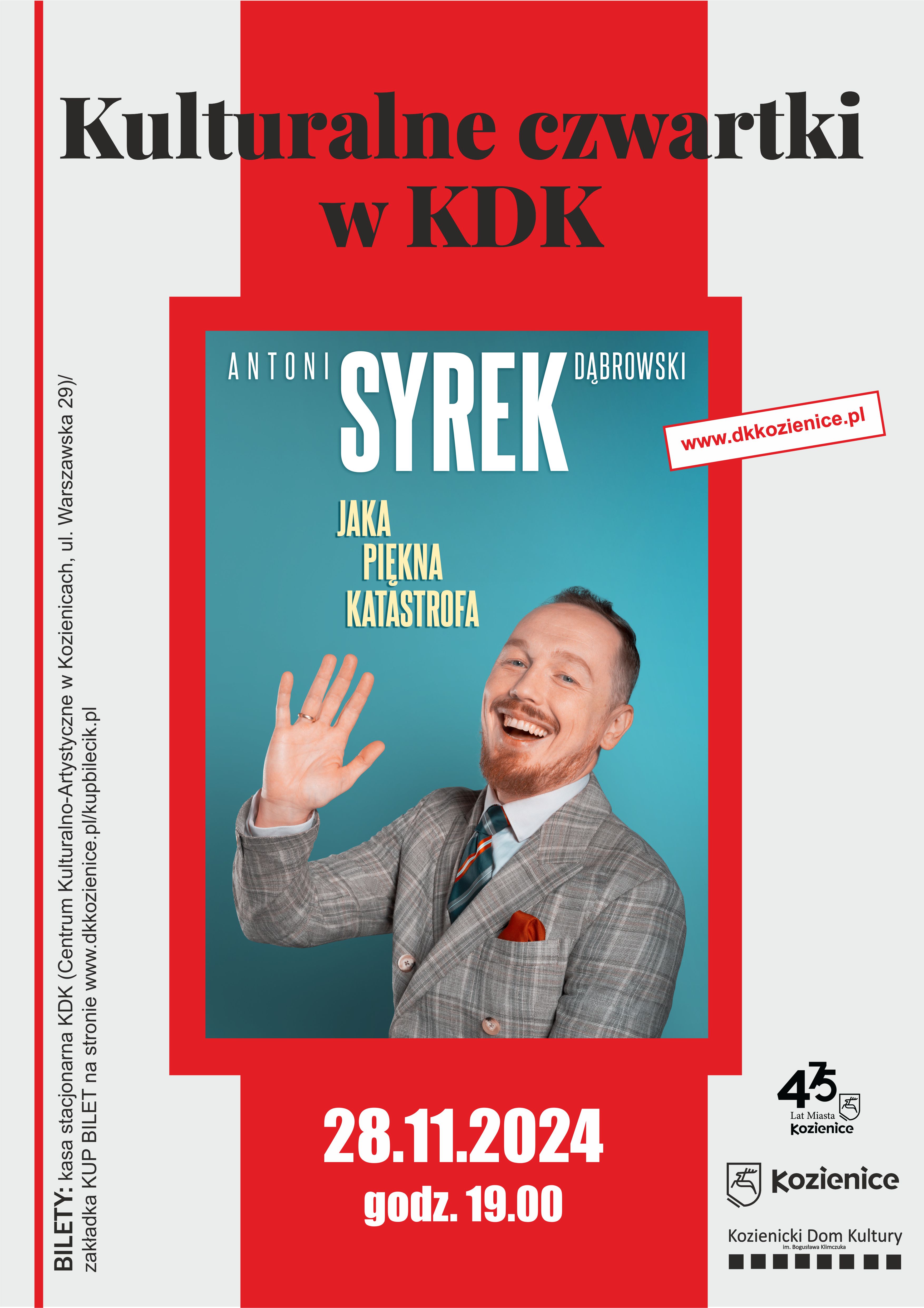 Zapraszamy na wieczór komedii i konsternacji z Antonim Syrek-Dąbrowskim. „Jaka piękna katastrofa” to zapiski przeżyć Antoniego z ostatniego roku, a jego perspektywa zmieniła się znacznie, odkąd został ojcem. Przed Antonim wystąpi również support.