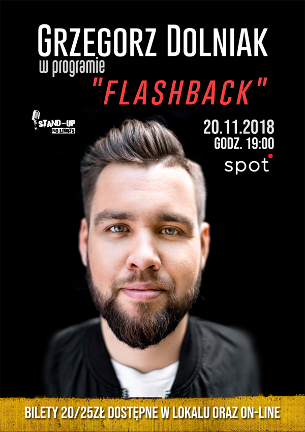 Flashback to nowy program Grzegorza Dolniaka – komika znanego m.in. jako twórcy Festiwalu Komedii SZPAK. Tym razem Grzegorz rozprawi się ze wspomnieniami z cudownych lat '90 i początków XXI wieku, opowie nam swoje flashbacki z życia na blokowisku szarym jak pogoda w Rewalu na pierwszym od dziesięciu lat urlopie i postara się sprawdzić ile z tego znajduje swoje odbicie w czasach dzisiejszych i dlaczego "kiedyś to były czasy", a teraz to zwykła bida z nyndzą i Polacy na kolanach.