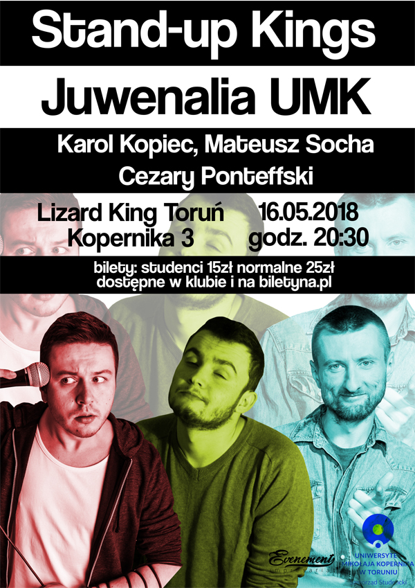 Juwenalia to czas muzyki, zabawy, morza alkoholu i śmiechu. Dlatego nie może zabraknąć stand-upu na scenie Lizard King Toruń!