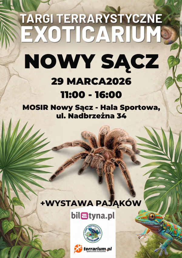 Już 29 marca zapraszamy do Nowego Sącza na niezwykłe wydarzenie - Targi Terrarystyczne Exoticarium! 🦎🐍🕷️