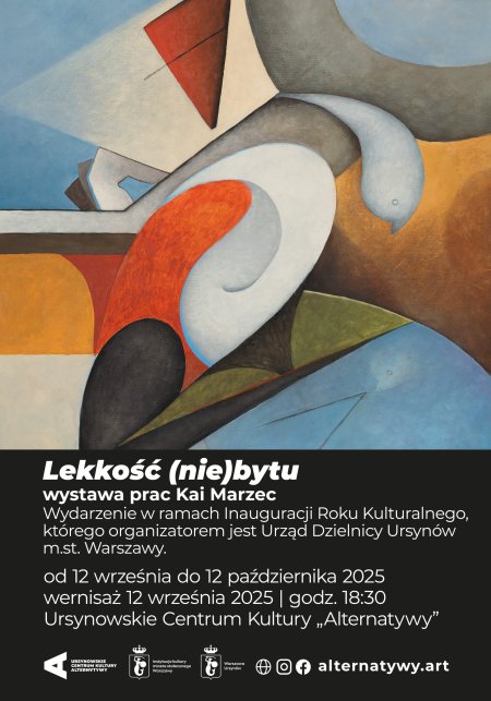 Kaja Marzec – malarka i projektantka graficzna, absolwentka Wydziału Grafiki ASP w Warszawie (dyplom 2018) oraz biologii na Uniwersytecie Warszawskim – w swojej twórczości bada napięcia między światem organicznym a technologicznym. Interesuje ją, w jaki sposób te dwa porządki – ludzki i mechaniczny – wzajemnie się przenikają, imitują i przekształcają. W swoich obrazach Marzec analizuje, jak współczesny człowiek, dążąc do przekroczenia własnych ograniczeń, wpisuje się w wyścig z maszynami i sztuczną inteligencją. Pyta, czy w tej pogoni nie zatracamy tytułowej lekkości – pojmowanej jako emocjonalność, spontaniczność i wolność twórcza. Artystka zestawia masywne, geometryczne formy z miękkimi, organicznymi kształtami, tworząc kompozycje pełne napięcia i prób wzajemnej adaptacji. Jej charakterystycznym kolorem jest błękit – symbol duchowości i świadomości, ale też chłodnego światła ekranów, będących bramą do świata technologii.